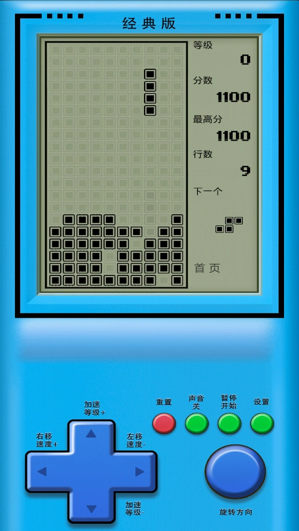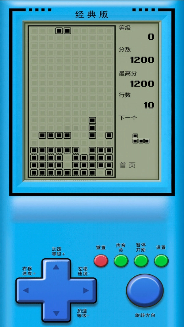 2. 方向键用于操控方块的左右移动与下落,助力你灵活把控其最终落点。按下“旋转/暂停”键,能够让当前方块完成顺时针旋转的动作。