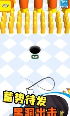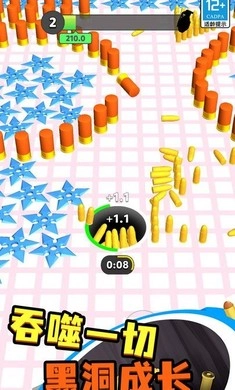 这是一款超休闲解压的黑洞吞噬游戏。在游戏里,玩家能操控专属黑洞吞噬周围的各类物品。随着吞噬物不断增加,黑洞会逐渐成长、体积变大,可吞噬的范围和物品种类也会越来越丰富,最终甚至能吞噬天地万物。更有趣的是,你用黑洞吞噬到的所有武器,将助力你开启一轮紧张刺激的小游戏——借助搜集到的全部火力,奋力冲破重重阻碍,杀出一条生路,最终抵达终点,成功拯救人质!