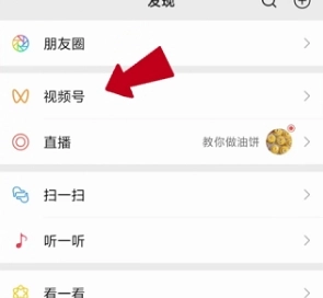 4、来到微信的“发现”页面中,点击选项列表中的“视频号”