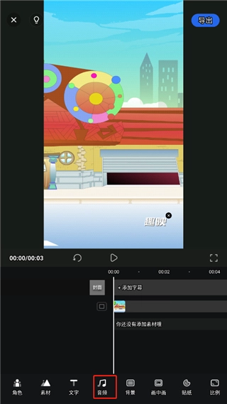 2、自定义添加角色、素材、文字、音频等等;
