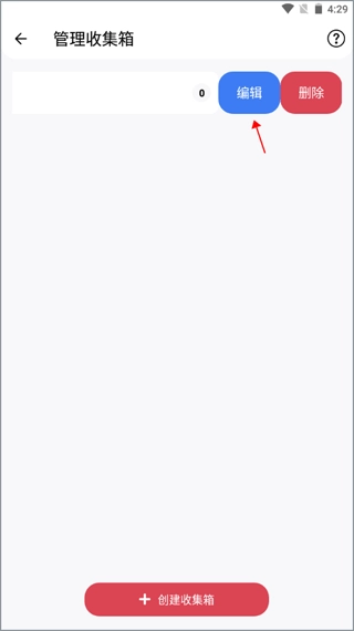 在首页左上角打开收集箱,点击右侧图标进入收集箱详情页面,向左滑动收集箱即可进行删除或重命名操作。