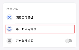 ●进入设置,找到特色功能中的“第三方应用管理”并打开。