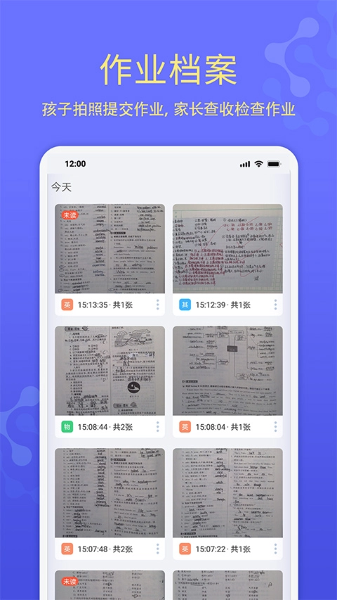 2、作业档案:能够查看孩子通过台灯端学习时提交的作业内容。