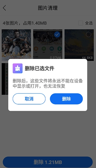 2、在这个位置选择你想删除的图片,点击“删除”按钮,接着在弹出的确认框里再次点击“删除”即可。