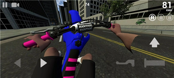 2、游戏的操作也很简单,左侧按钮负责控制方向,右侧的↑按钮能让摩托车抬头,下方的两个按钮分别是刹车键和油门键;