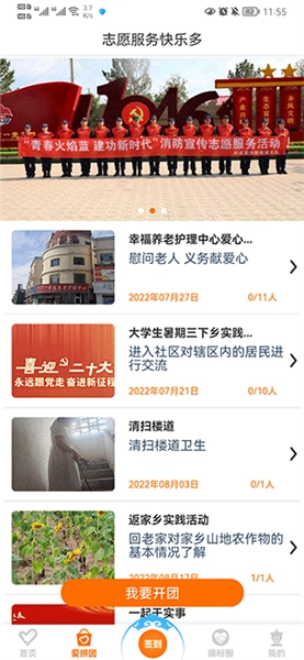 1、查看带来的志愿者活动动态分享,在手机中也能关注活动进展
