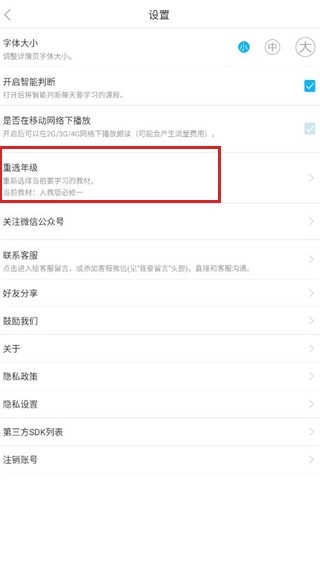 2. 在设置里填写你的年龄,系统就会为你推荐匹配的课本。