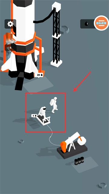 1、进入游戏场景后,操控宇航员靠近标有“5”的油桶,收集资源。