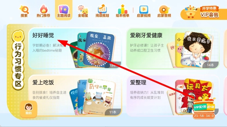2、在主题阅读页面,找到好好睡觉主题区,点击进入。