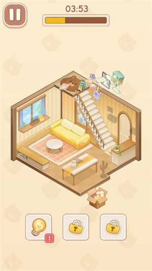 3、把家具物品放置到正确位置就能让它们摆放整齐,关卡顶部的进度条显示的是已摆放的家具数量。