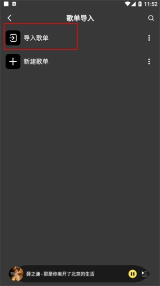 1、第一步在首页当中找到歌单导入选项。