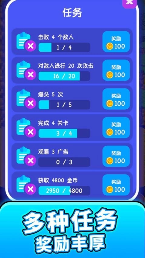 3、设计了多种挑战模式,包含无尽模式、限时模式以及特殊任务模式。