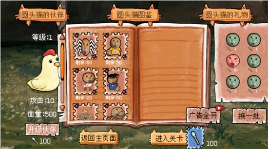 3、选择第一关后,开局会介绍圆头猫和小伙伴的信息。