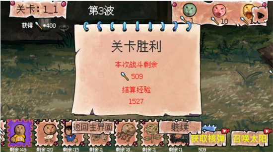 6、关卡胜利后将获得大量的经验。