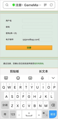 3、按照紫色框内的网址在浏览器里打开:gamemakerserver.com/en/register。