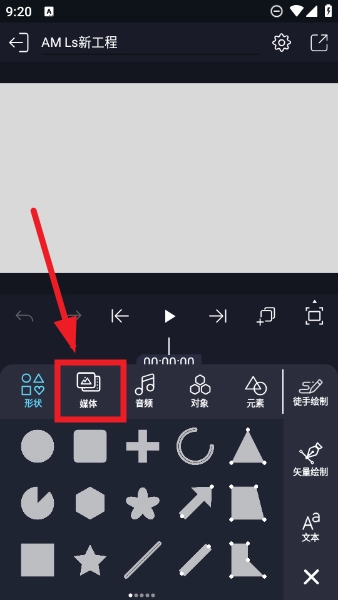 3、要是大家做的是视频剪辑,那就点击“媒体”选项;如果是处理音频内容,则点击“音频”选项,之后就可以导入手机里对应的素材了。