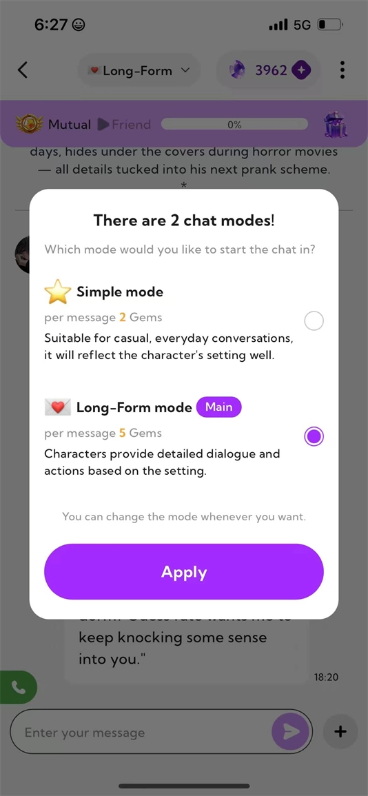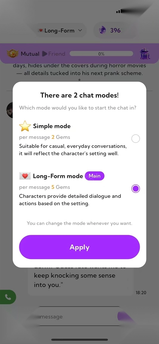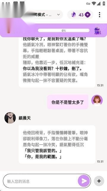 2、用户可完全掌控聊天的节奏,既可频繁互动推动剧情,也可随时暂停。