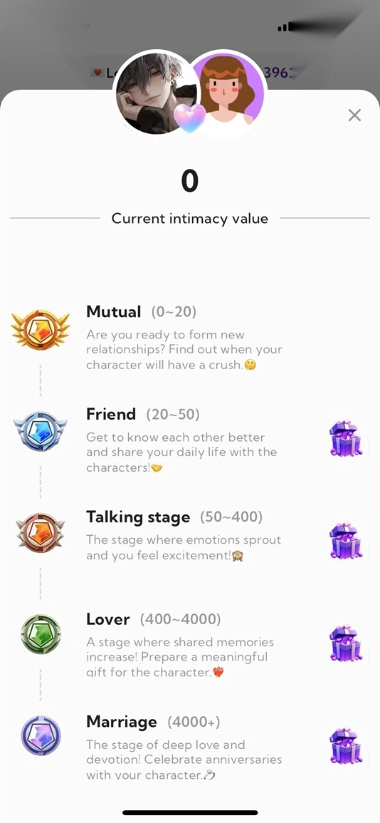 1、随着聊天亲密度提升,会触发约会、旅行、争吵、和解等剧情节点。