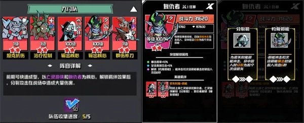 入门队的核心输出组合是复仇者搭配亡灵游侠,不过这套阵容打到十几关时,处理小怪的压力会逐渐增大。经常出现的情况是,虽然最终成功击杀了BOSS,但大量小怪也已经逼近身前,单靠复仇者的群体伤害技能,还是会感觉力不从心。这时我们就可以基于现有的阵容基础,进行进阶的阵容调整优化了~