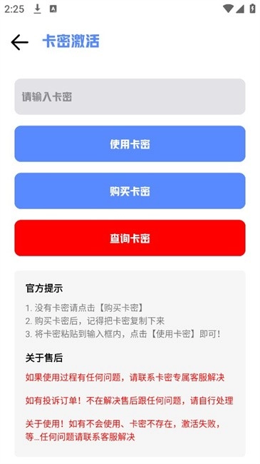 4、比如卡密解锁的方式,就像图里展示的那样,接着在这个界面输入对应的卡密就能完成解锁了。