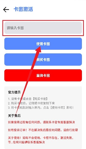 3、将卡密粘贴到输入框内,点击【使用卡密】即可