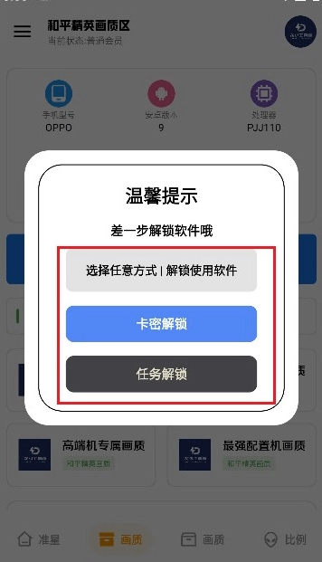 3、挑选一项画质优化功能并点击进入,比如终端机专属画质。接着选择一种解锁方法。