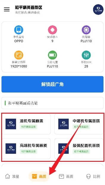 2、在【画质】界面中,我们可以看到这里提供了针对不同处理器、分辨率及设备类型的多种画质优化功能,如图所示,中高低端设备均有对应的优化选项。