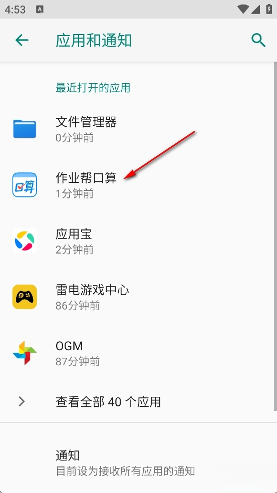 进入手机设置界面后点击【应用和通知】