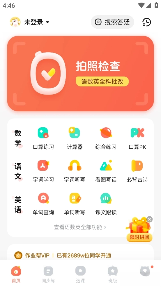 作业帮口算是作业帮旗下的学习工具,它聚焦家长辅导作业的需求,不仅支持语文、数学、英语等多学科的作业辅导,还配备了口算练习、字词学习、作文搜索、计算器、课文背诵等多样学习功能,助力家长更轻松地完成辅导工作。