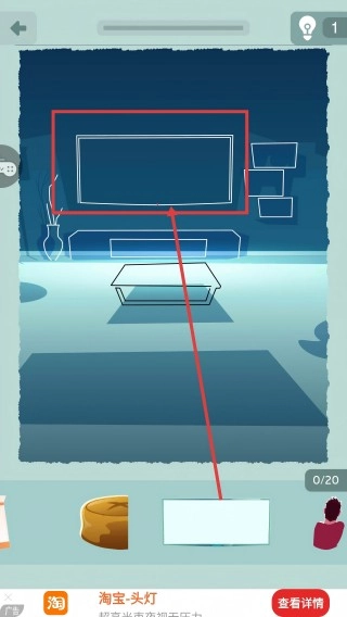 1、拖动下方的【白色板块】,用它填补墙上的电视轮廓,以此完成电视布置,进而推进场景构建的进度。