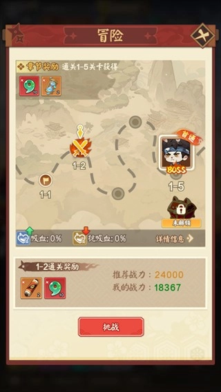 4、战力上来了就可以去挑战冒险也可以获得物质