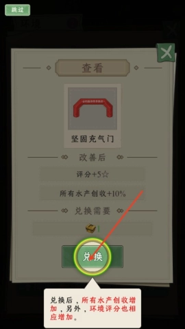 8、别忘了兑换充气门,这样可以促进水产的收益升级。