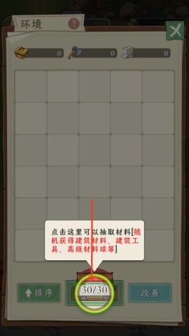 6、点击这里可以抽取升级你鱼塘环境所需的材料。