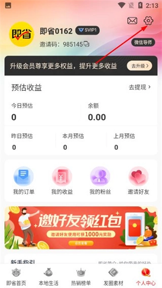 1、进入个人页面后,点击右上角的设置图标,即可进入设置页面。