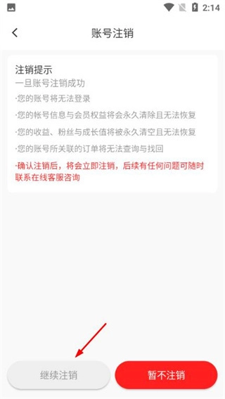 4、在确认相关信息无误后,点击【继续注销】按钮,即可完成账号注销的全部操作。