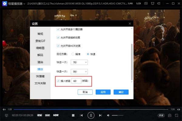 视频播放过程中,右键点击进入“设置”里的“播放”选项,在帧率设置处输入想要的数值(例如60)。设置完成后,点击视频左下角的“插帧”按钮就能开启该功能,让画面流畅度得到明显提升。