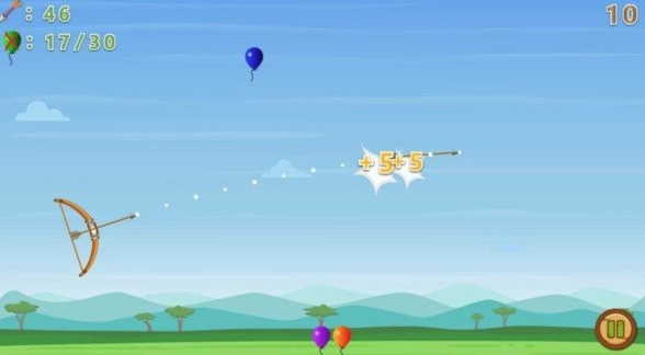 1. 控制弓箭手:玩家需要控制弓箭手左右移动,调整角度和力度,射击空中的气球。