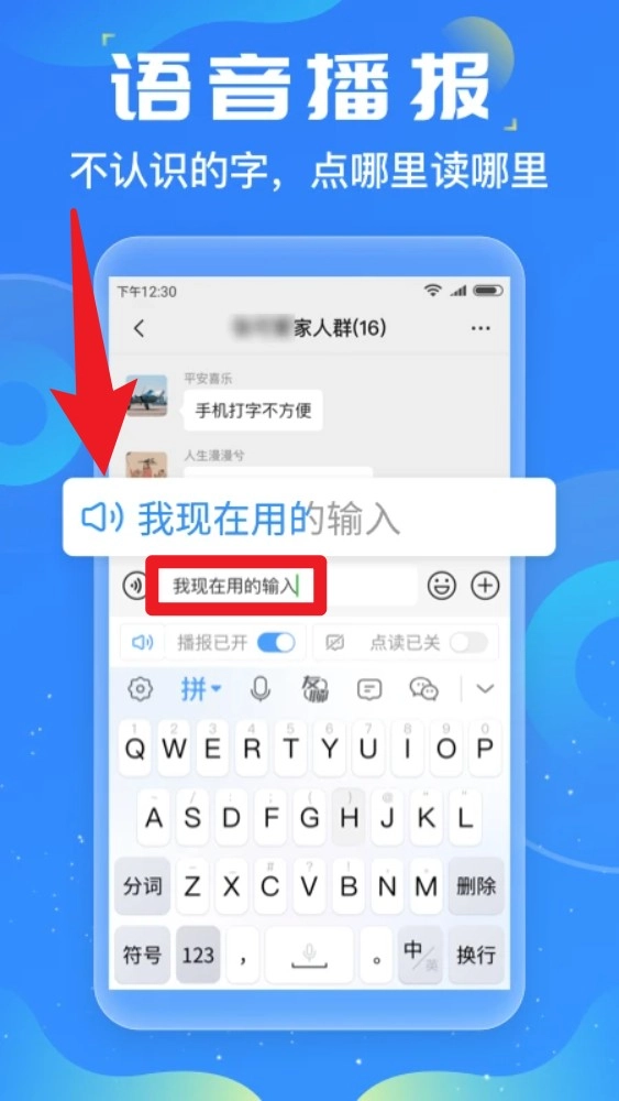 2. 要是碰到不认识的字,可以点击文字内容或者开启语音播报功能,系统就会朗读当前输入的内容。