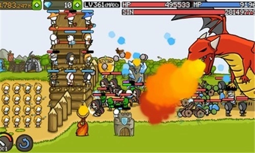 2. 战斗与防御机制:敌人会持续向城堡发起进攻,玩家需通过合理布置英雄与塔楼来进行防御。战斗过程中,玩家可点击城墙上的英雄以释放技能,技能的使用会消耗MP且释放后将进入冷却阶段。巧妙运用技能能够改变战斗的局势。