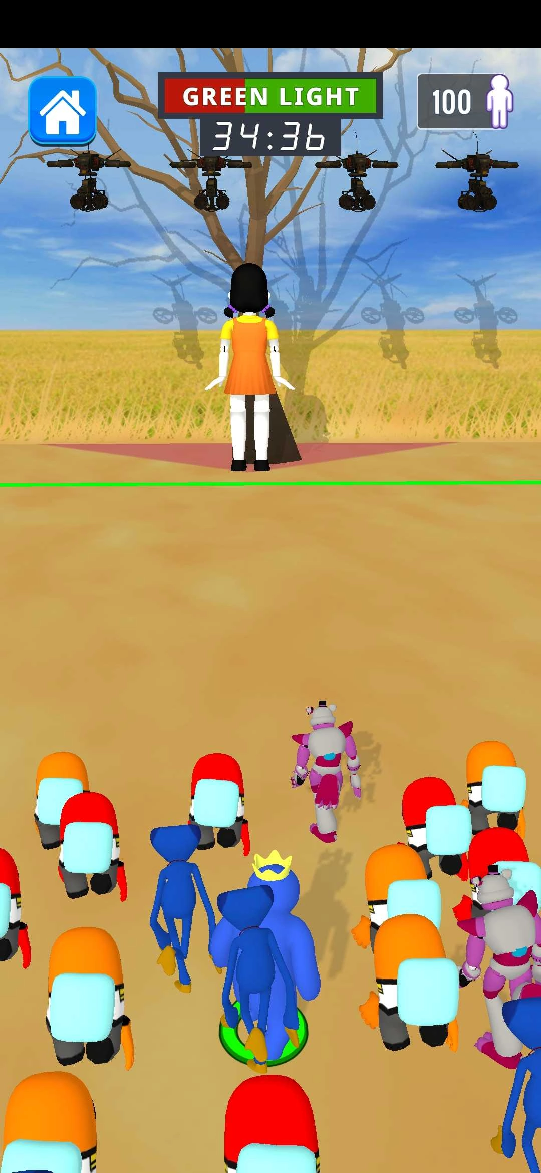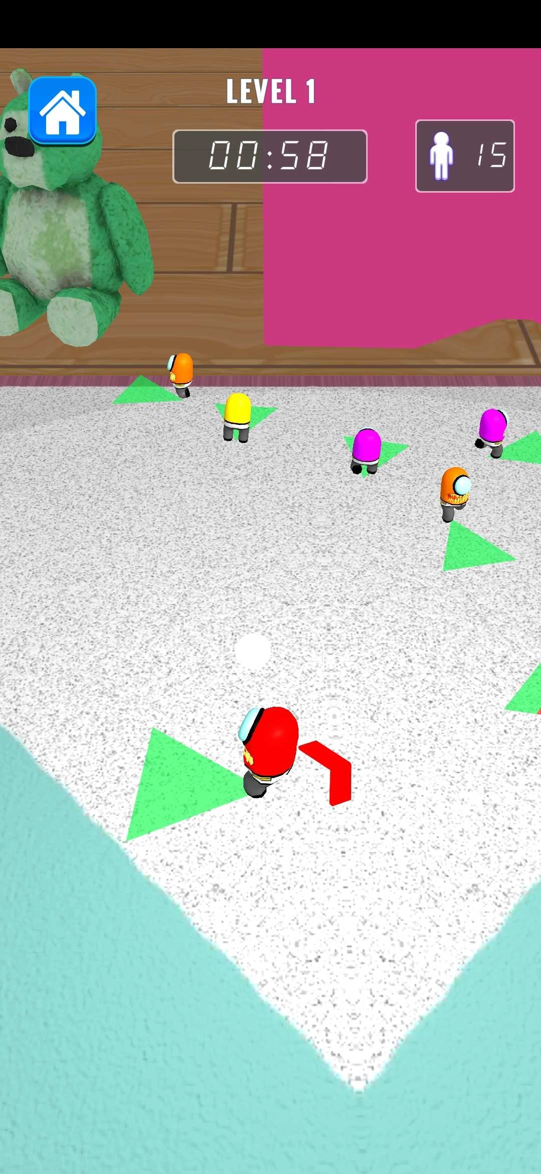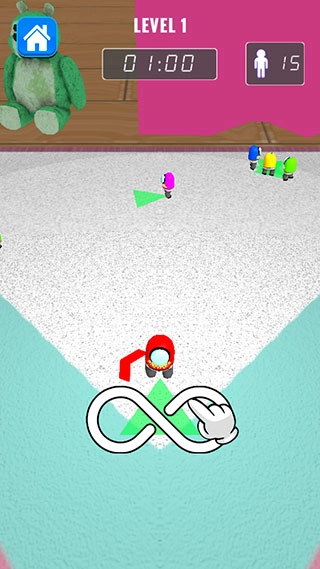 3、第二关的玩法是木头人模式,只要能在不被发现的情况下率先抵达终点,就算获得胜利