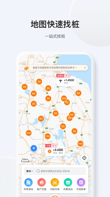 【一键找站·周边速查】随时快速定位附近站点,周边充电点一目了然,还能直接跳转地图导航,开电动车出门再也不用担心找不到充电的地方啦