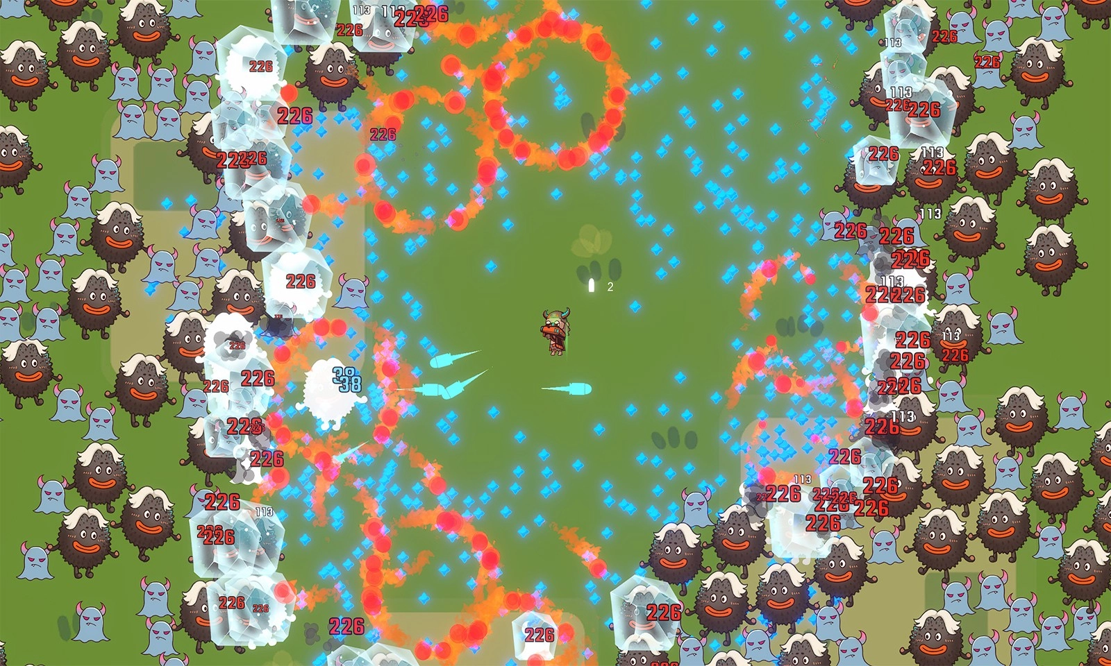 2. 游戏开始后,玩家需要在场景里持续移动并射击,以此击退袭来的野兽与敌人的进攻。