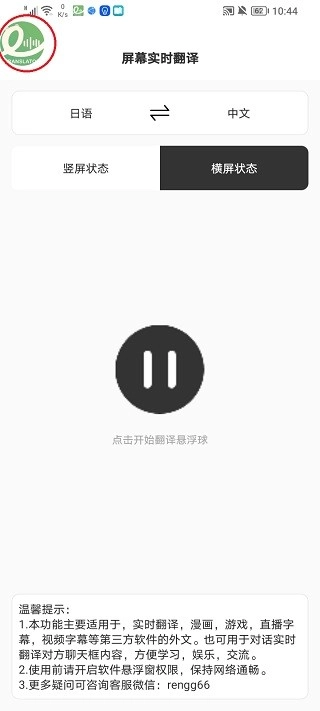 5、打开要使用的软件或游戏后,当需要翻译时点击绿色小圆标,稍作等待,翻译结果就会显示在屏幕上。