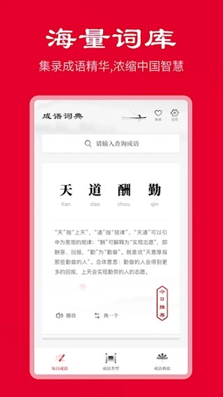 5、每日积累:每日推送精选成语,搭配详细解析,帮助通过点滴积累丰富成语储备量。