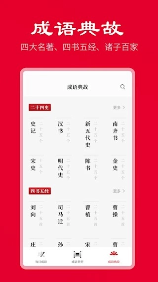 3、典故溯源:收录四大名著、四书五经等经典典籍里的成语典故,全面展现成语背后蕴含的文化底蕴与历史渊源。