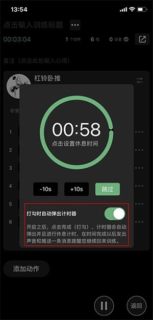 此时,如果你想记录和追踪你的休息,那么点击每一组后面的「小时钟」按钮即可。