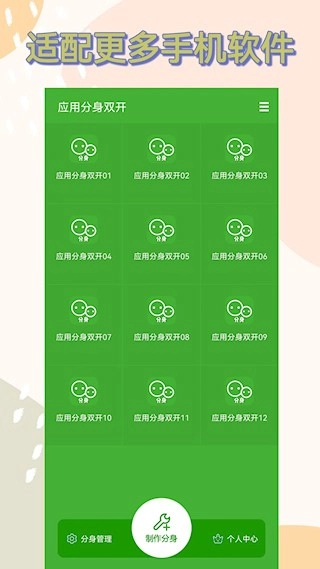 1、快速添加:打开主界面后点击“添加应用”,选择想要的目标应用就能完成分身创建,整个操作过程简洁直观。