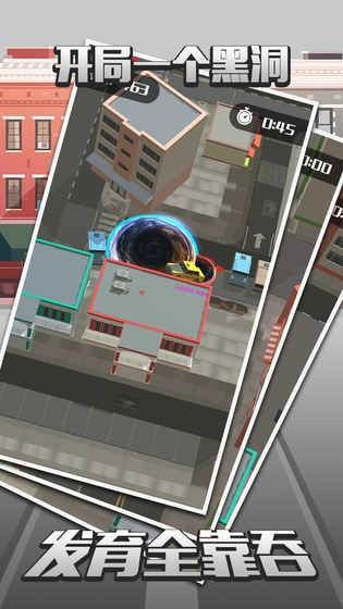 只需轻松滑动手指,控制黑洞去不断吞噬场景中的各个物体