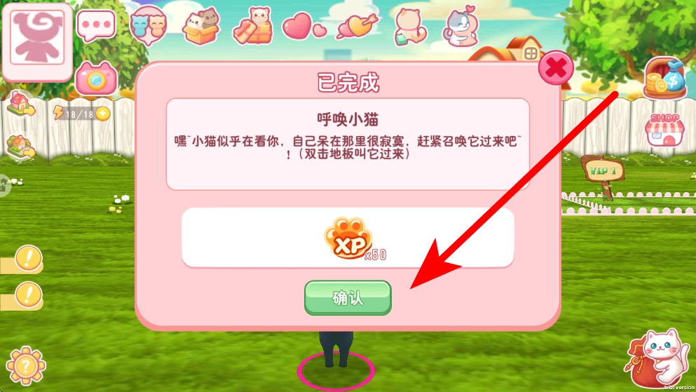 3、与宠物相处过程中,会出现诸如呼唤小猫等互动任务,按照任务提示,如双击地板呼唤宠物,完成任务后可获取经验等奖励。