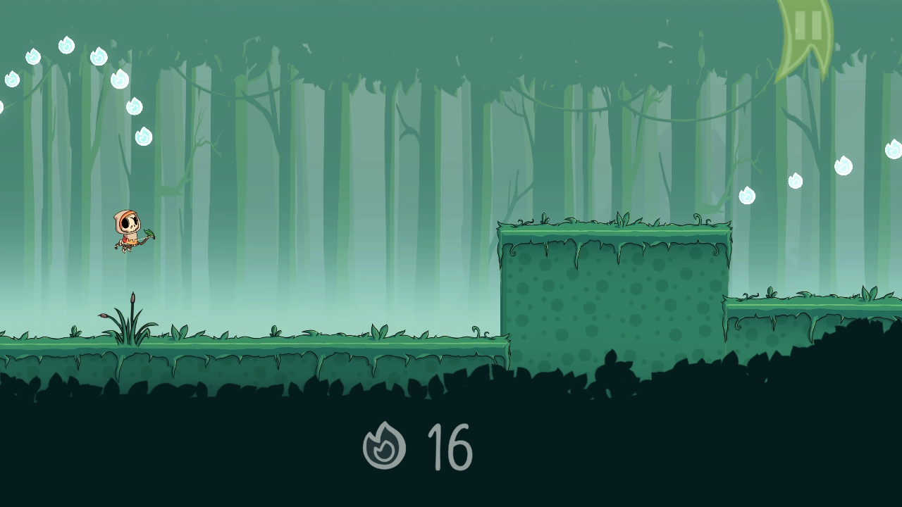 2、注意场景中的地形,如悬崖,适时跳跃躲避障碍并收集类似水滴的道具。